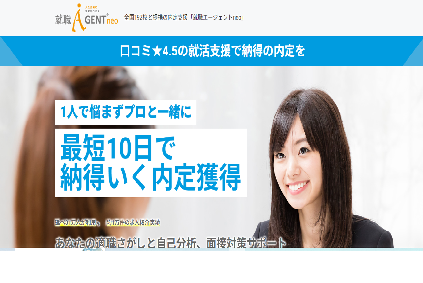 新卒就職エージェントneoは、新卒・既卒・第二新卒を対象に、就職活動を一人ひとりに合わせて支援する就職エージェントサービスです。