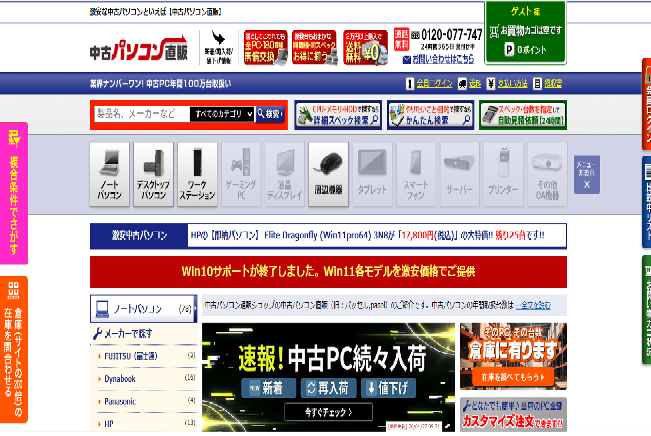 中古パソコン直販は、25年以上の実績を持つ老舗の中古PC専門店です。単に「安い」だけでなく、利用者が安心して使い続けられる仕組みが整っています。