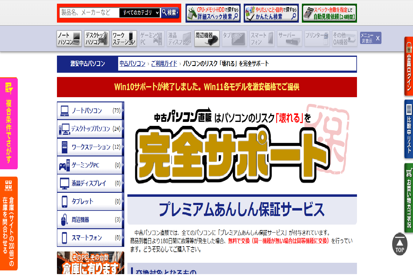 - 180日間の長期無償交換保証: 通常、中古PCの保証は1週間〜1ヶ月程度ですが、ここでは約半年間の保証がつきます。中古への不安を払拭する手厚いサポートです。