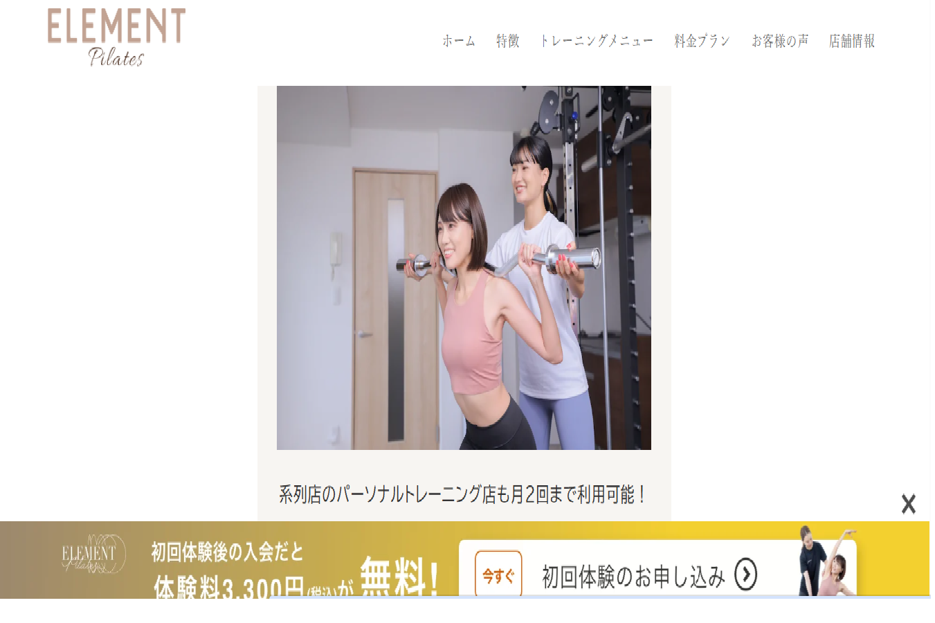 「パーソナルジムは高いし、回数制限があるから通い続けられるか不安…」そんな悩みを解決し、フィットネス業界に革命を起こしたのがパーソナルジム「ELEMENT(エレメント)」です。