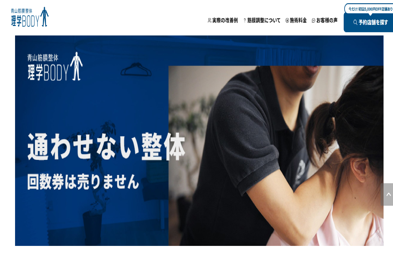 現在、全国で急成長を遂げている「青山筋膜整体 理学BODY」。ここは、一般的なマッサージや一時的なリラクゼーションとは一線を画す、「痛みの根治」と「整体からの卒業」を掲げるプロフェッショナル集団です。