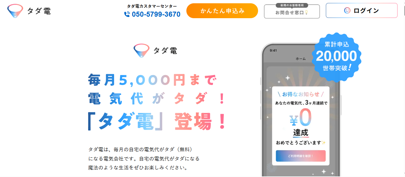 タダ電は、株式会社エスエナジーが提供する、これまでの電力業界の常識を覆す新しい電力サービスです。最大の特徴は、何と言っても「毎月5,000円分までの電気使用量が無料(0円)」になるという点です。