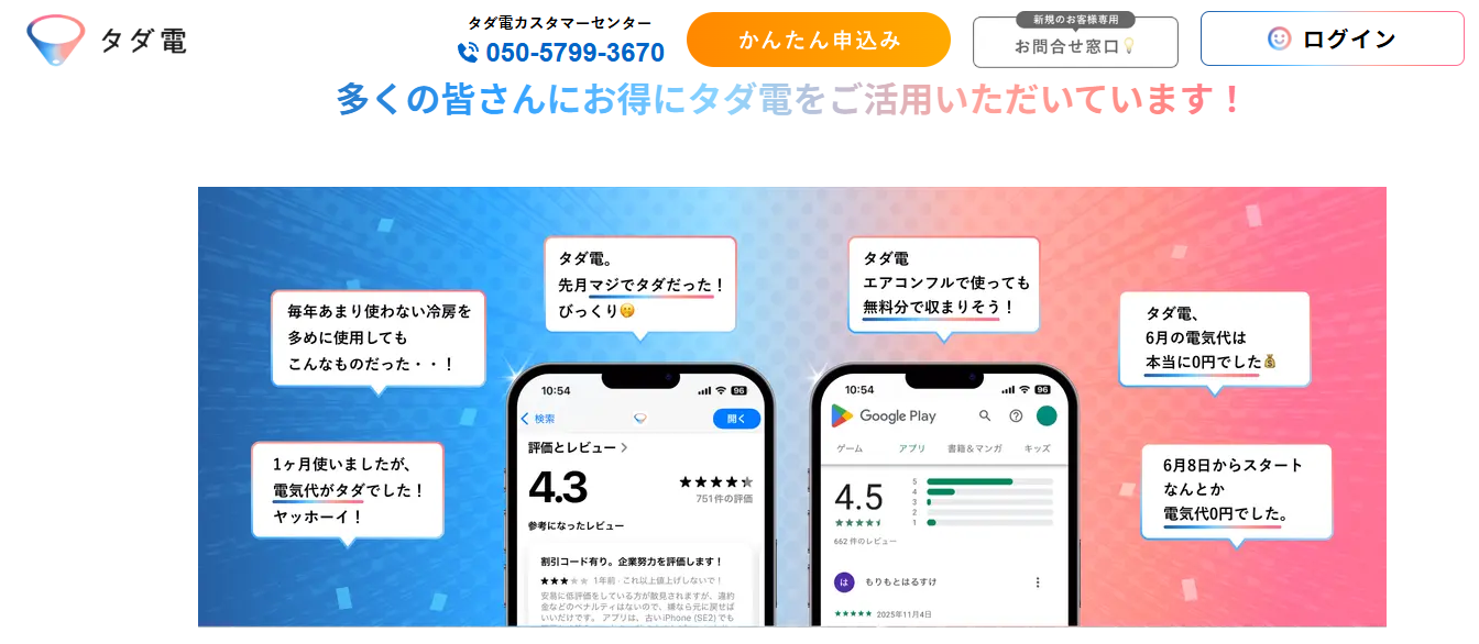 - アプリをダウンロード:「タダ電」公式サイトから専用アプリをインストールします。