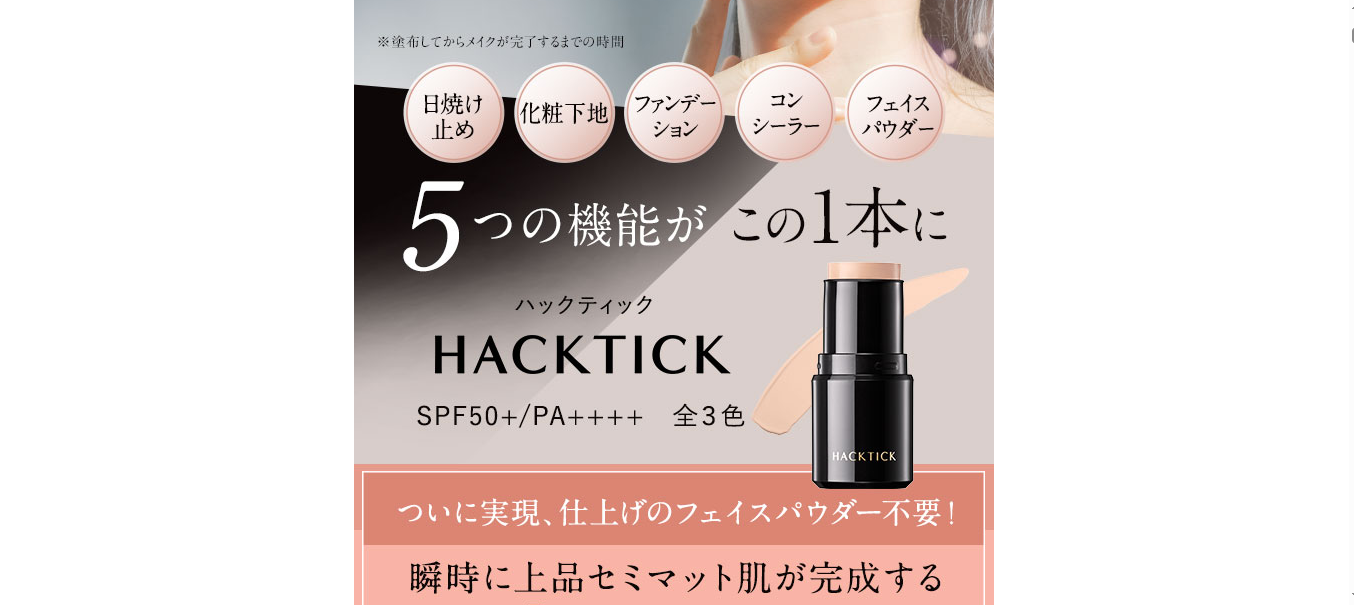 その名も『ハックティック』。自宅で、誰でも、簡単に、まるでメイクアップアーティストが仕上げたようなスキのないセミマット肌をたった10秒で完成させてしまう、次世代のバーム状スティックファンデーションです。