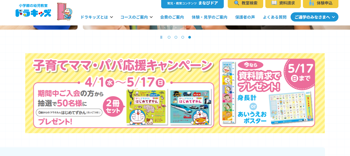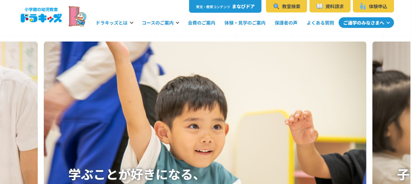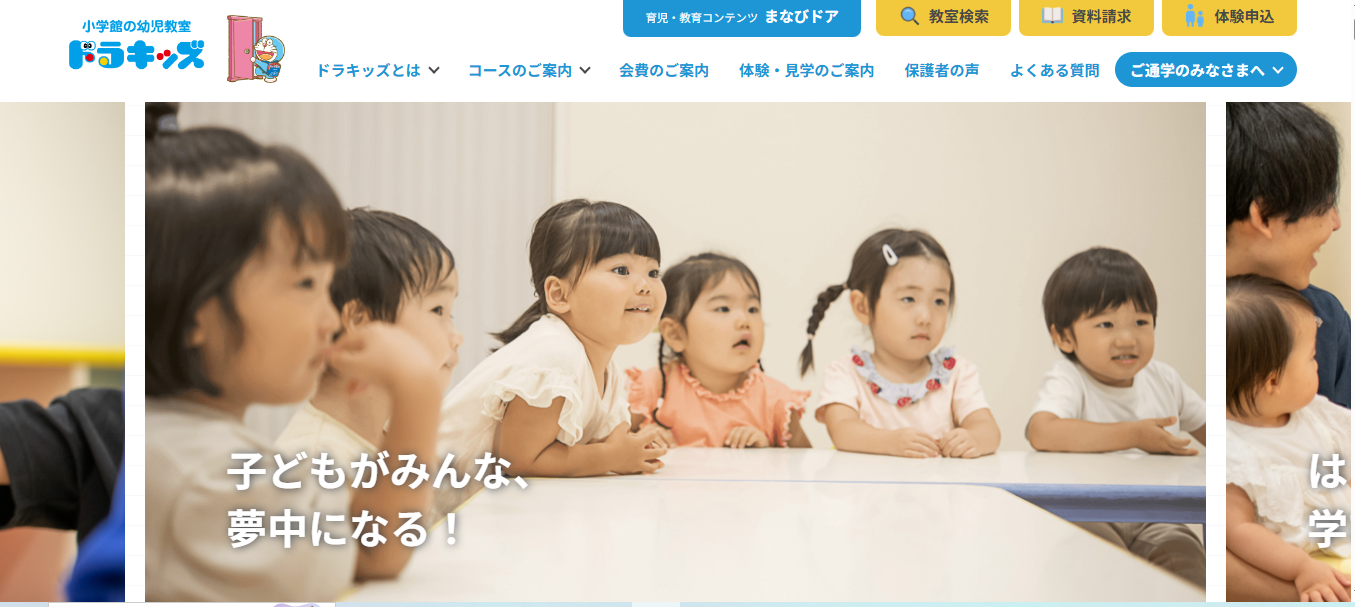 ドラキッズは、株式会社小学館集英社プロダクションが運営する幼児教室です。全国230ヶ所以上の教室を展開し、0歳10ヶ月から小学3年生まで幅広い年齢に対応しています。