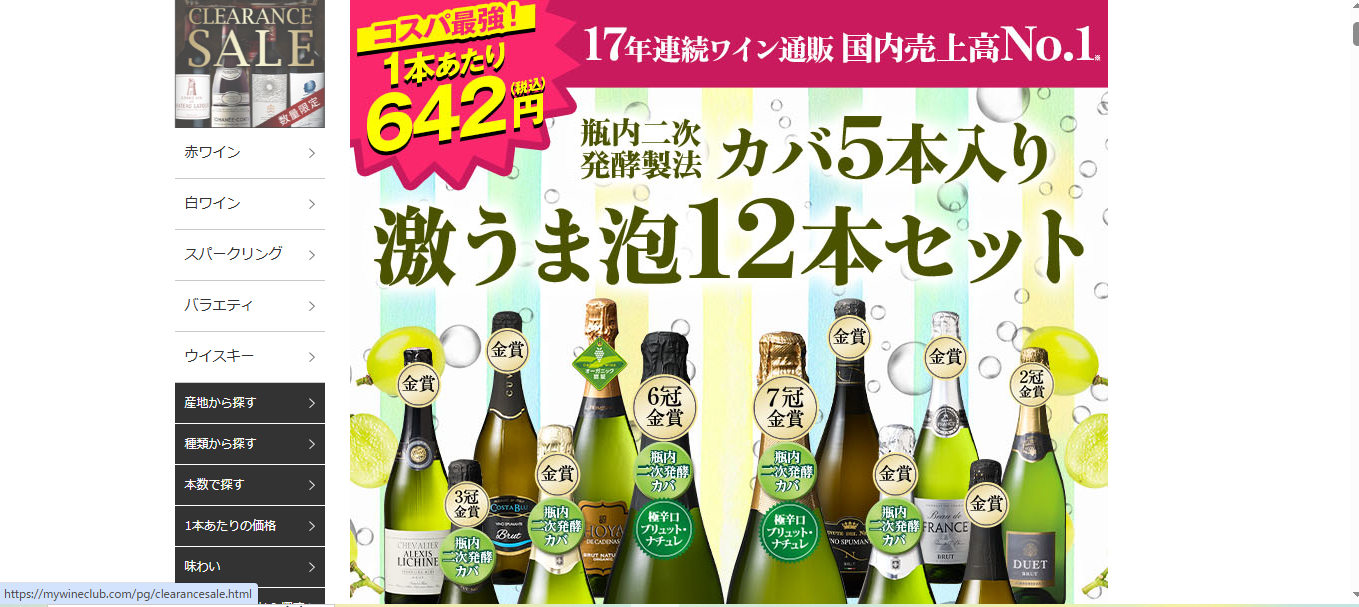 マイワインクラブは、日本国内向けのワイン専門通販サービスです。フランス・イタリア・スペイン・チリ・オーストラリアなど世界20カ国以上のワインを取り扱い、赤・白・ロゼ・スパークリングなど種類も豊富。価格帯は1,000円台のデイリーワインから1万円を超えるプレミアムボトルまで幅広く揃っています。